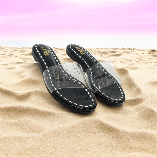 Black & White Clear Strap Flats
