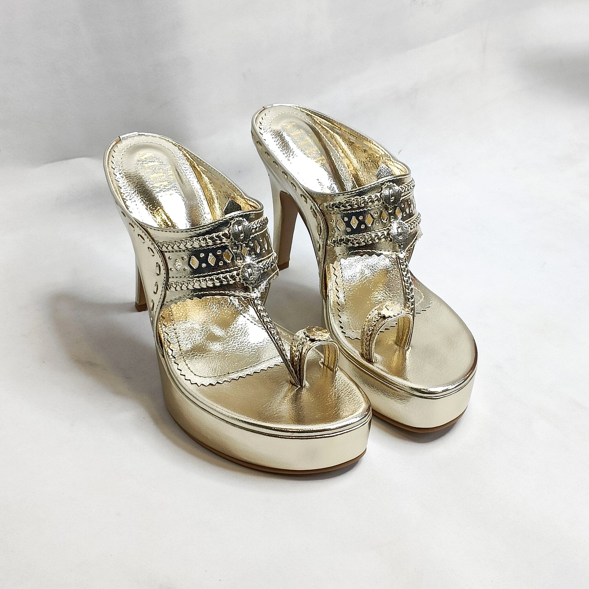 These Extravagant yet elegant Aisha Gold Chunky Platform Kohla’s are designed in a unique contemporary bold silhouette, taking the oomph factor a notch higher.