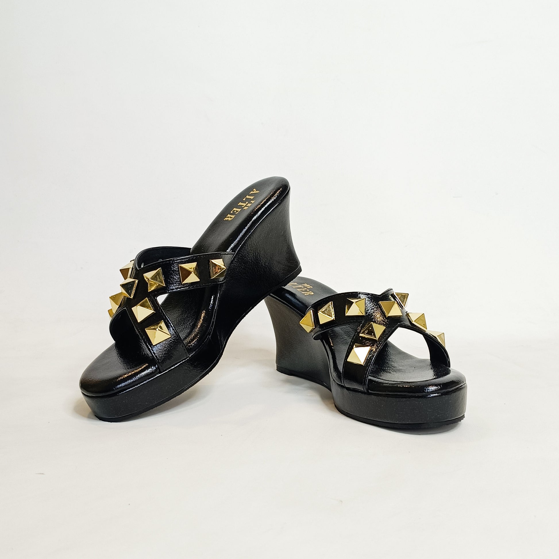 A Total Must - Have in your shoedrobe, these Studded Uber Cool Wedges are here to lift your moods. These Super comfy slip on are so apt to elevate your everyday look.