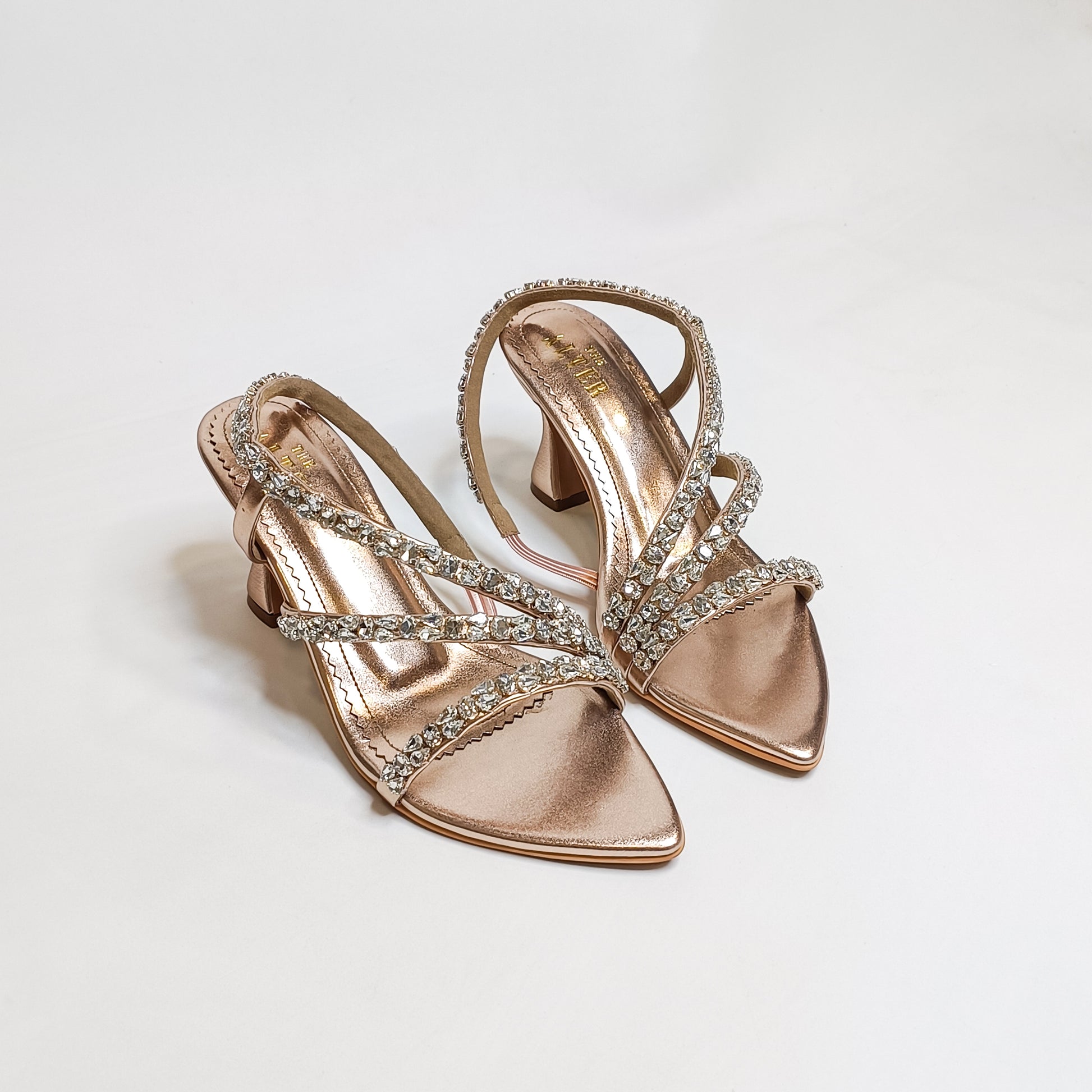 Make a bold & striking statement wearing our Exclusive Bridal Collection, Kiara Embellished Hourglass Heels. These Stunning Pair are intricately designed with Rhinestones along with in a fabulous combination of premium suede featuring, open toe strappy silhouette.