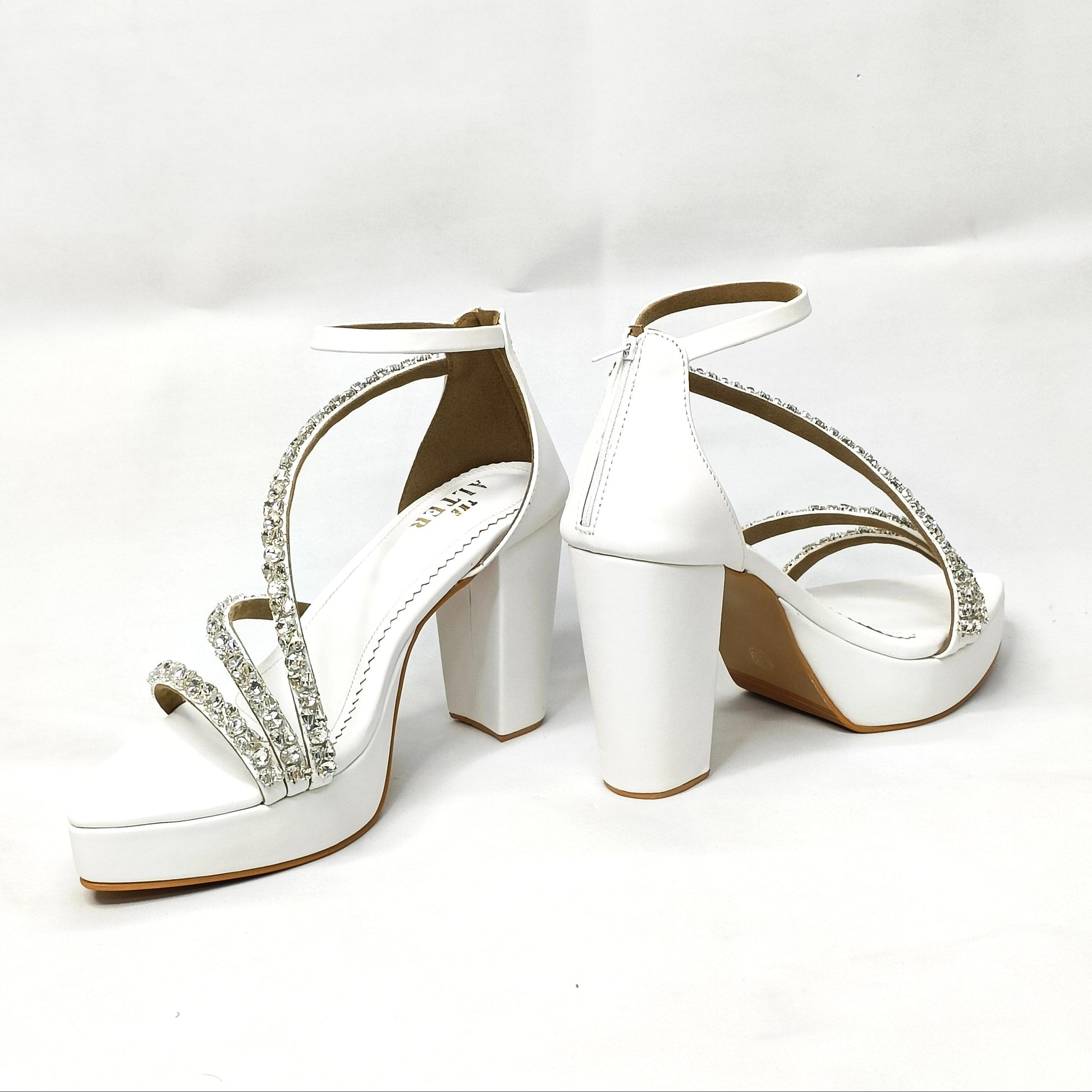 Make a bold & striking statement wearing our Exclusive Festive Collection, Kiara Embellished Platform Block Heels with a zip counter. These Stunning Pair are intricately designed with Rhinestones along with in a fabulous combination of premium quality vegan faux leather featuring, open toe strappy silhouette.