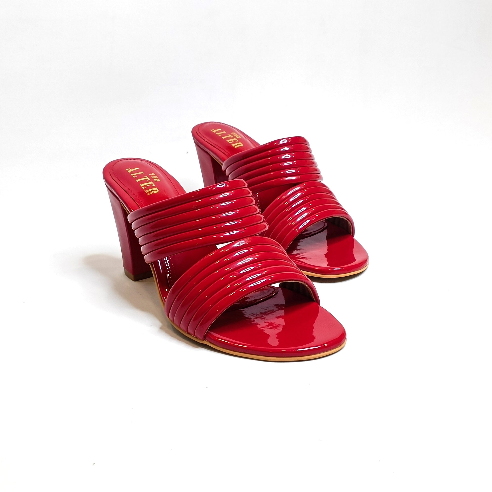 An absolute glam silhouette in a glossy vibrant patent quilted strap look. These mules are designed along with a sleek block heel along with ultra comfy cushioned footbed for your comfort. Just the pair you need to effortlessly elevate your look a notch higher. Handcrafted to perfection using soft premium quality patent faux leather