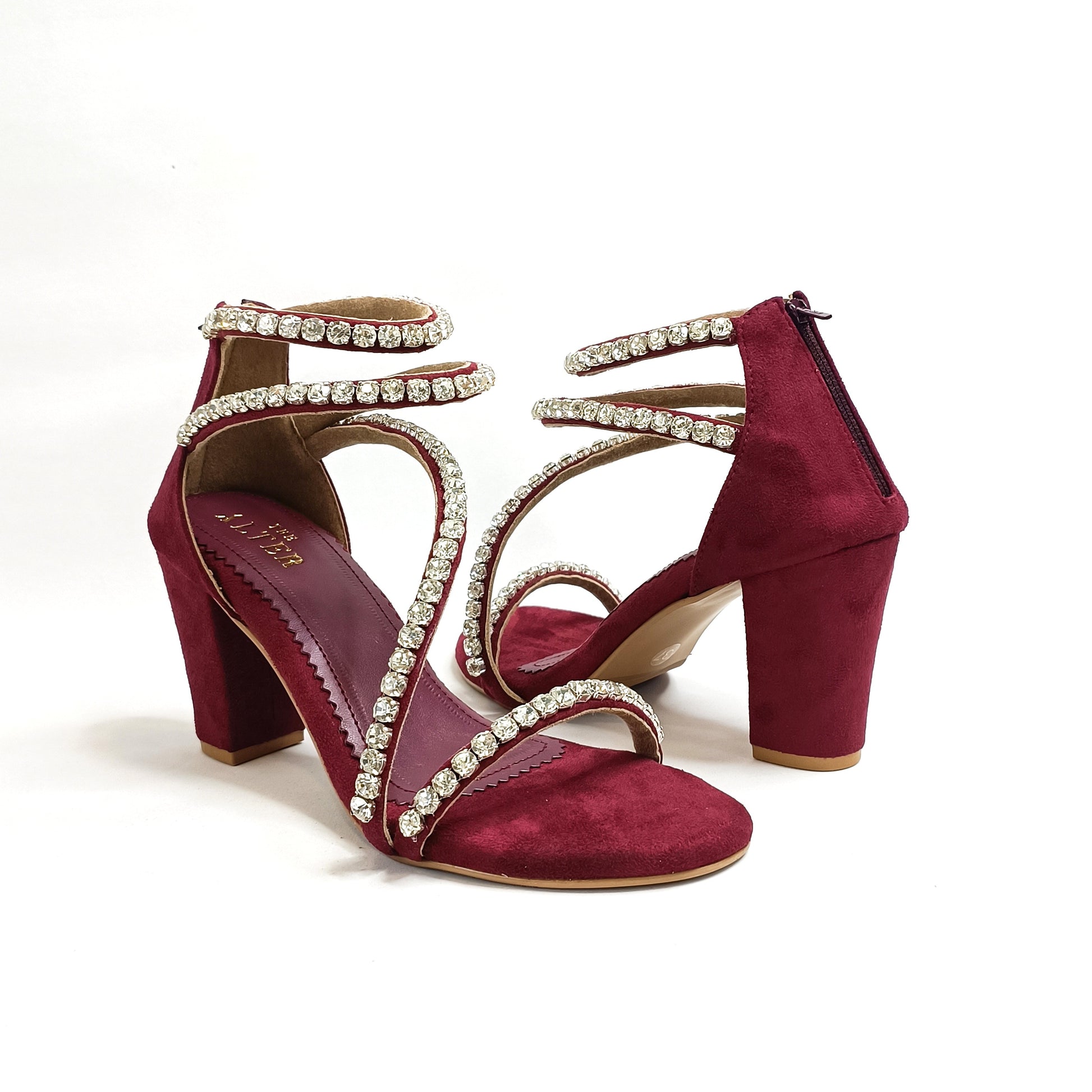 Handcrafted couture for your feet ! Our Exclusive Bridal Collection, Serena Embellished Suede Block Heels is a Glam Unique silhouette with stunning crystal embellished strappys. Intricately designed with Rhinestones detailing along with in a fabulous combination of premium suede