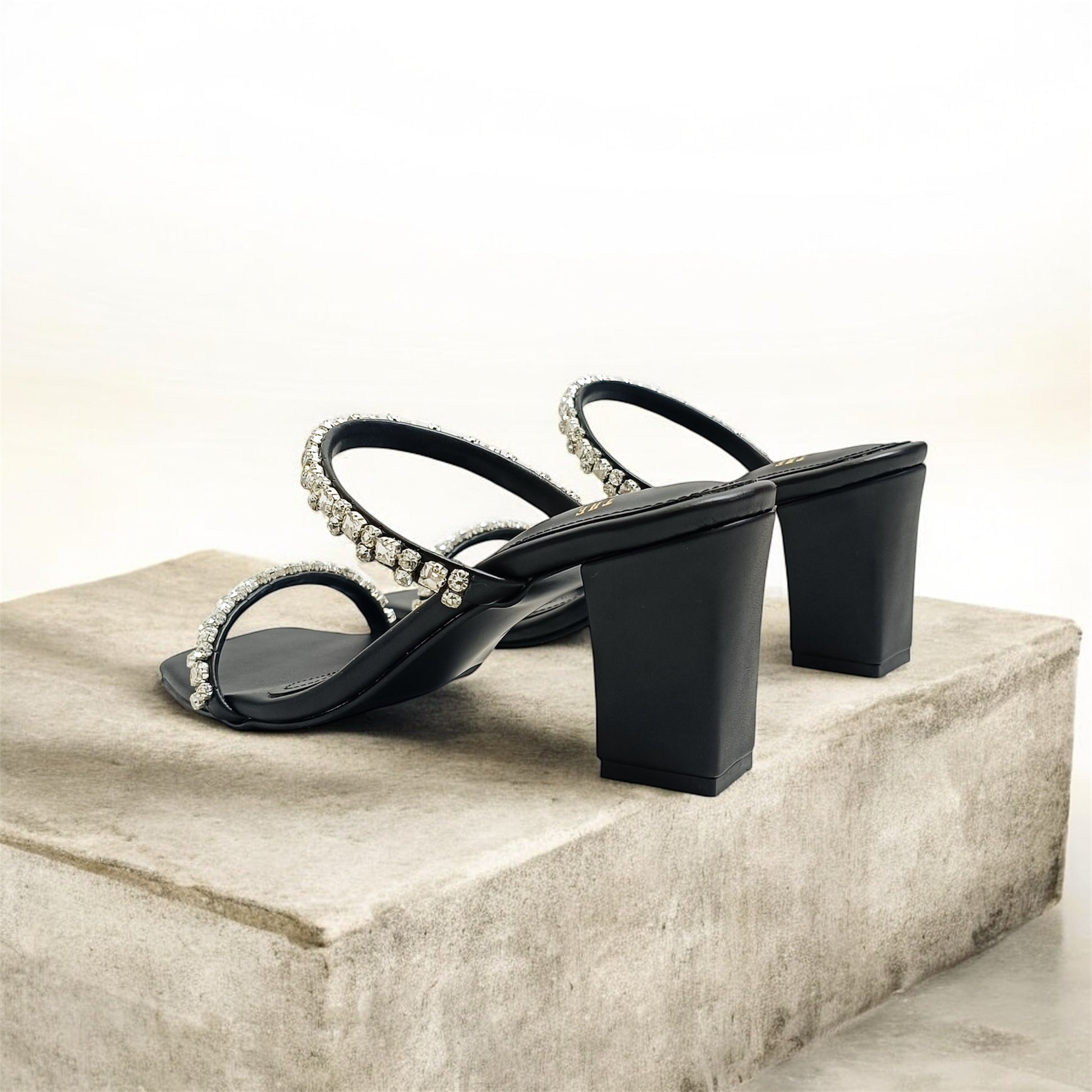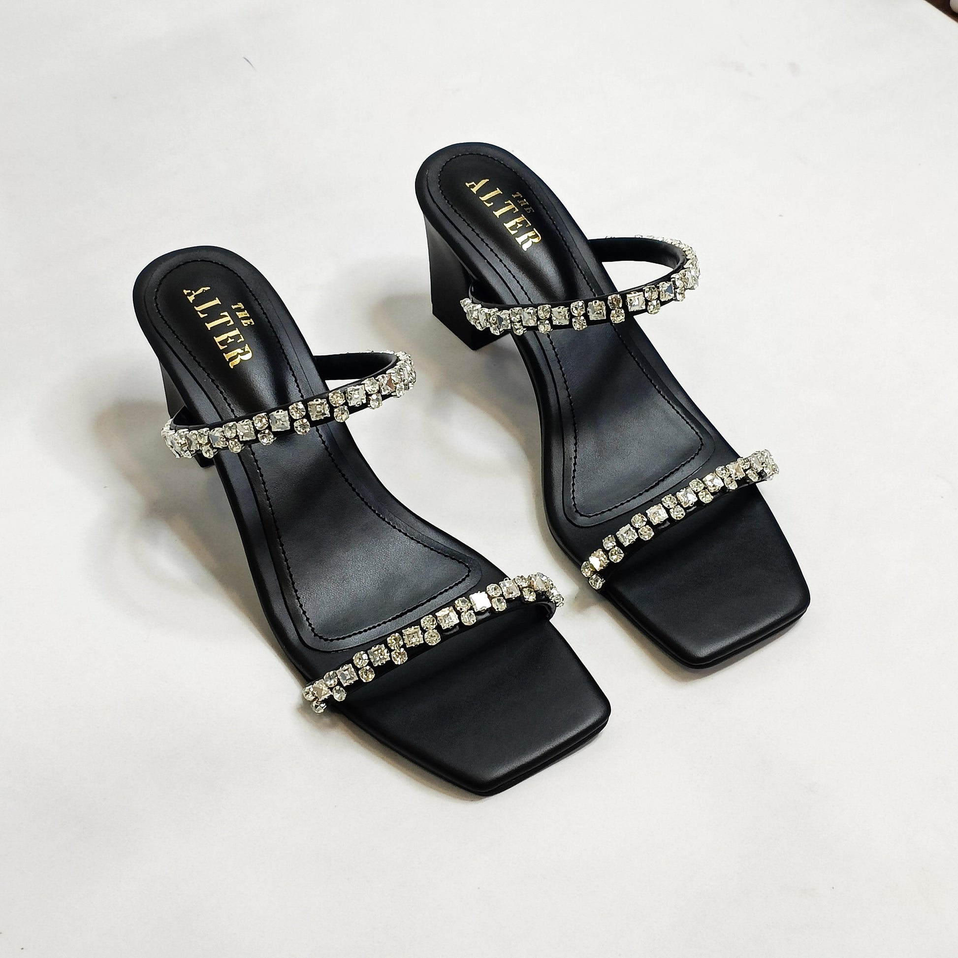 Exquisite T - shaped Two Strap Embellished Block heels handcrafted in a neutral tone is the perfect pair to add a touch of glam to your outfit. Handcrafted with an elegant two strap silhouette intricately designed with Rhinestones work.